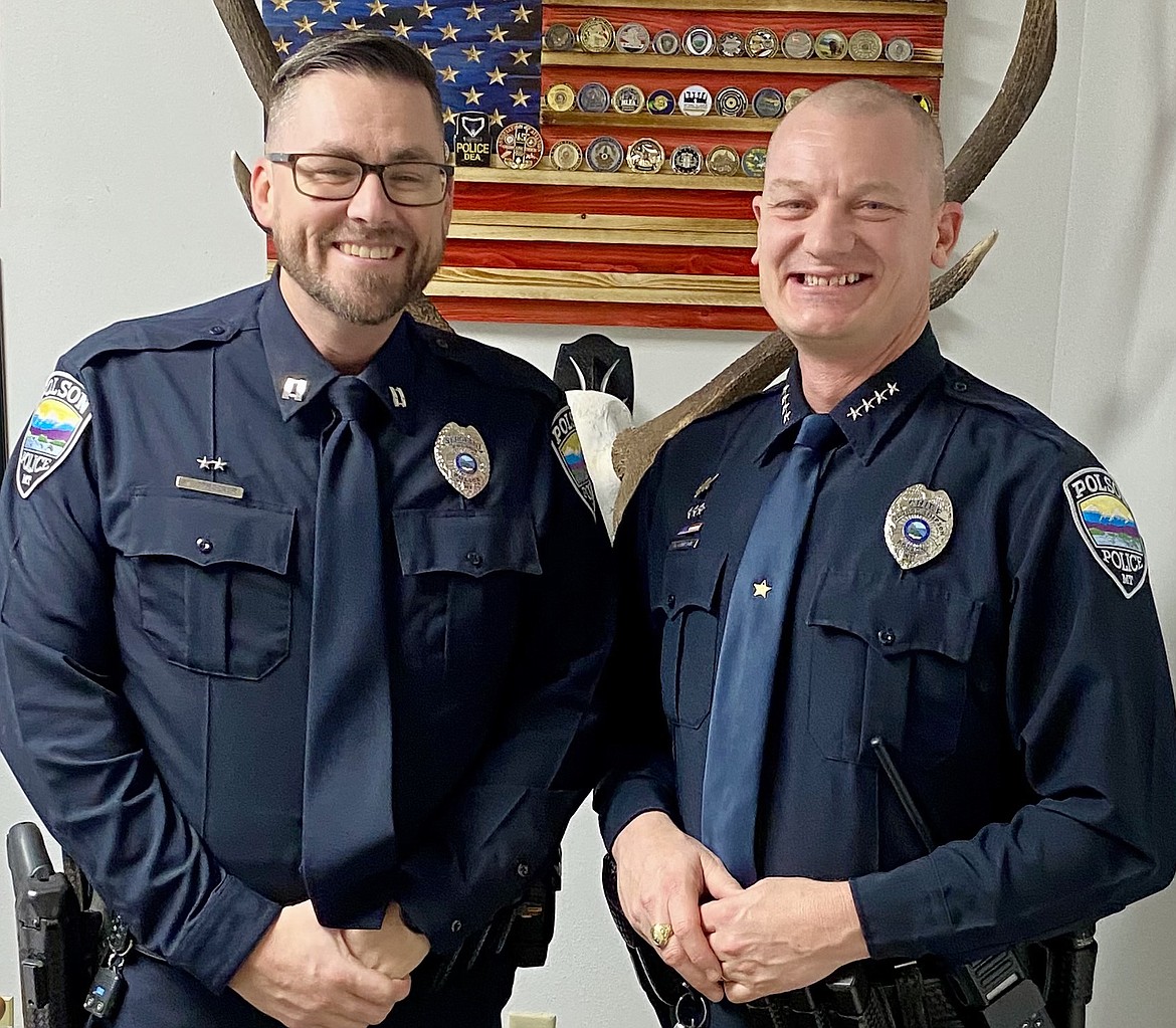 Polson Police Chief George Simpson introduced newly minted police captain Mathieu Gfroerer, who has served with the police department for eight years, and spent seven years with the Lake County Sheriff’s Department. He’s also an Army combat veteran.
