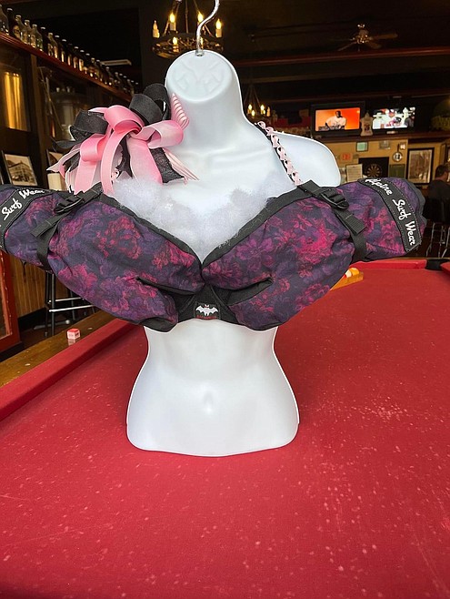 The live auction includes donated items and decorated bras, wreaths, pumpkins and gift baskets. Bras are artistically designed to either represent fun aspects of life in the Silver Valley such as hunting or are made with items from local businesses.
