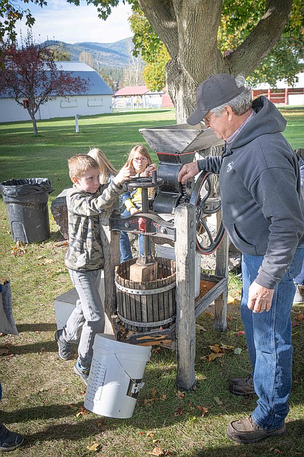 For the second year, Bruce Beckstead and Marilynn Carr were on hand to teach students about how apple cider is made. Students watched while Carr peeled apples. Beckstead had kids help him operate the apple press and each were rewarded with a cup of freshly squeezed apple cider.