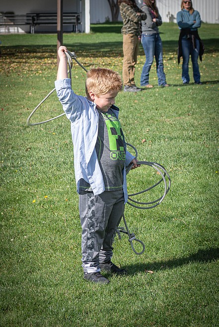4-H games were staffed by many youth volunteers from 4-H and FFA, Mikiah Cook, Melody Cook, Jayden Cook, Clair Wrobleski, Andrew Wrobleski, Katherine Wrobleski, Elsie Meyers, Nick McAllister, and Brooke Jackson. The games included musical chairs and the kids were introduced to the fine art of operating a lasso and trying to capture a horned wooden sawhorse. This event, for the spectators, was best viewed from a distance so the audience didn’t find themselves being roped.