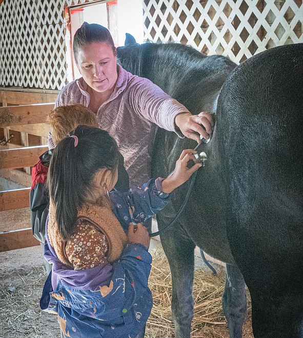 Be a Doctor was taught by Thompson Falls Veterinarian Dr. Stephanie McIntyre. She spoke about the health and illnesses of horses. Each student was given the opportunity to listen to the heartbeat of a horse with a stethoscope.