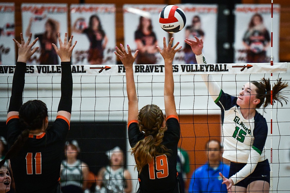A block by Leila Major and a kill by Haven Speer got Glacier up 17-16, but the Bravettes would tie the score twice before the match point. Major had 13 kills, four blocks and Speer had 29 assists.