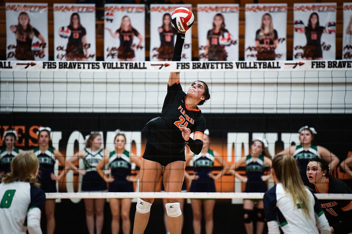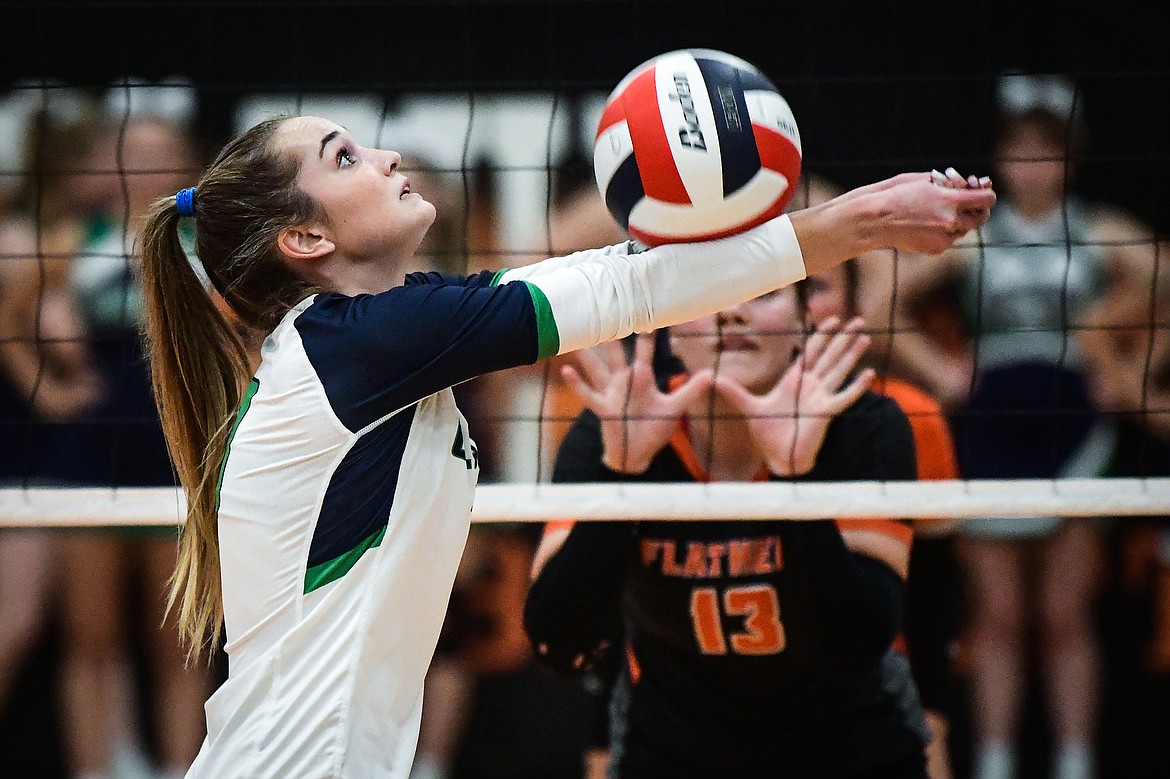 Flathead got a 16-9 lead in the first set off kills by Anna Bain and Kendall Kratofil, and a block and kill from Sienna Sterck, who ended up with 15 kills. The Braevttes would lead by as much as eight points in that frame.