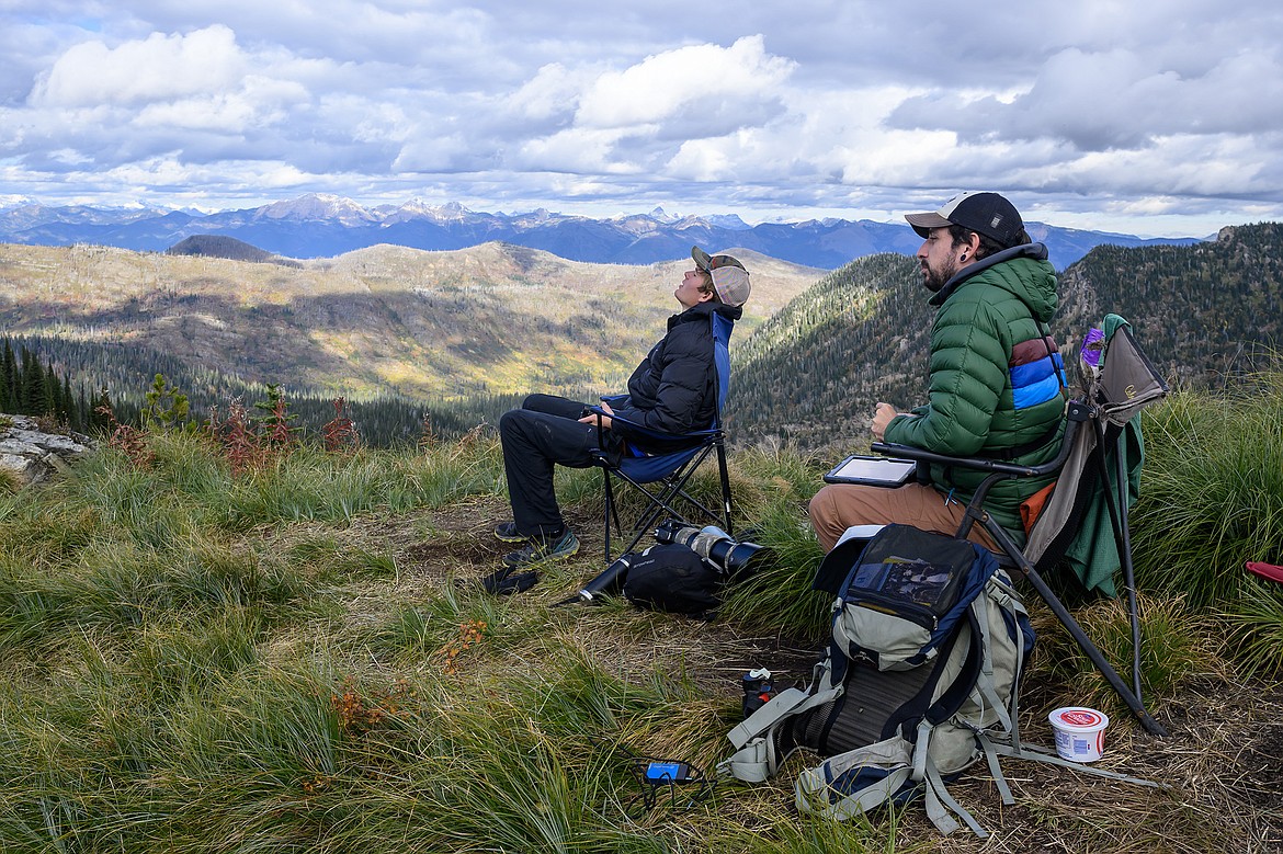Covill runs the day-to-day bird surveys under a contract with the Flathead Audubon Society and support from the Forest Service. The Audubon Society decided to fund the contract position in order to get the best possible data. Covill typically is on the ridge from about 10 a.m. until dusk each day, counting birds, a pair of 10 power binoculars in hand and an iPad on his lap.