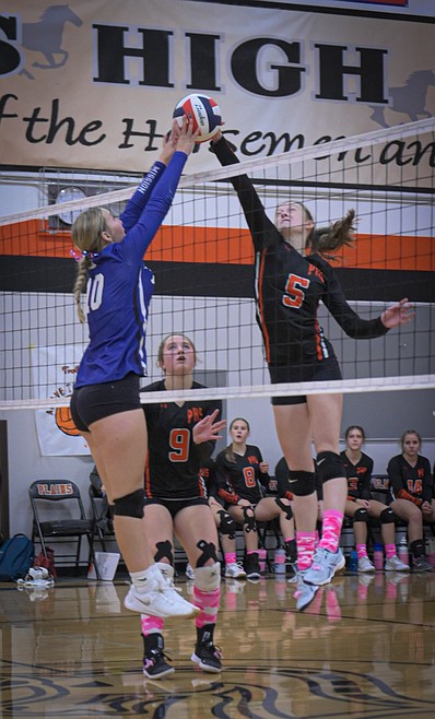 Claire Lakko had another outstanding game for Plains, piling up a match best 18 assists to go with five digs and nine aces. Her sister Blakely tied with Deming for the team lead in kills with five each. Blakely also had three service aces, as did Teagan Saner for the Trotters. Taylor Saner led the team with a match best 15 digs.