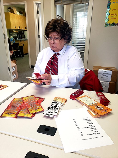 Around a dozen volunteers stuffed the books with two Elks bookmarks and a red ribbon that reads, “Drugs … Be smart, Don’t start,” for red ribbon week.