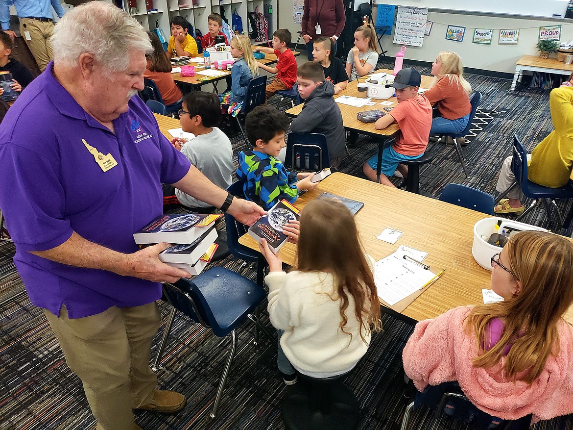 He and his team of five Elks delivered 745 dictionaries to local third graders Monday. Each class was full of wide-eyed students like those at NExA.