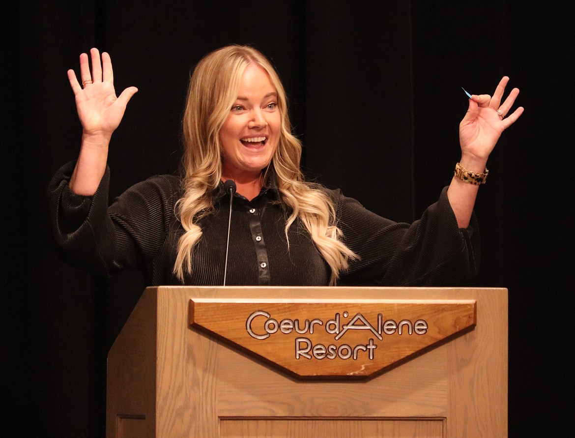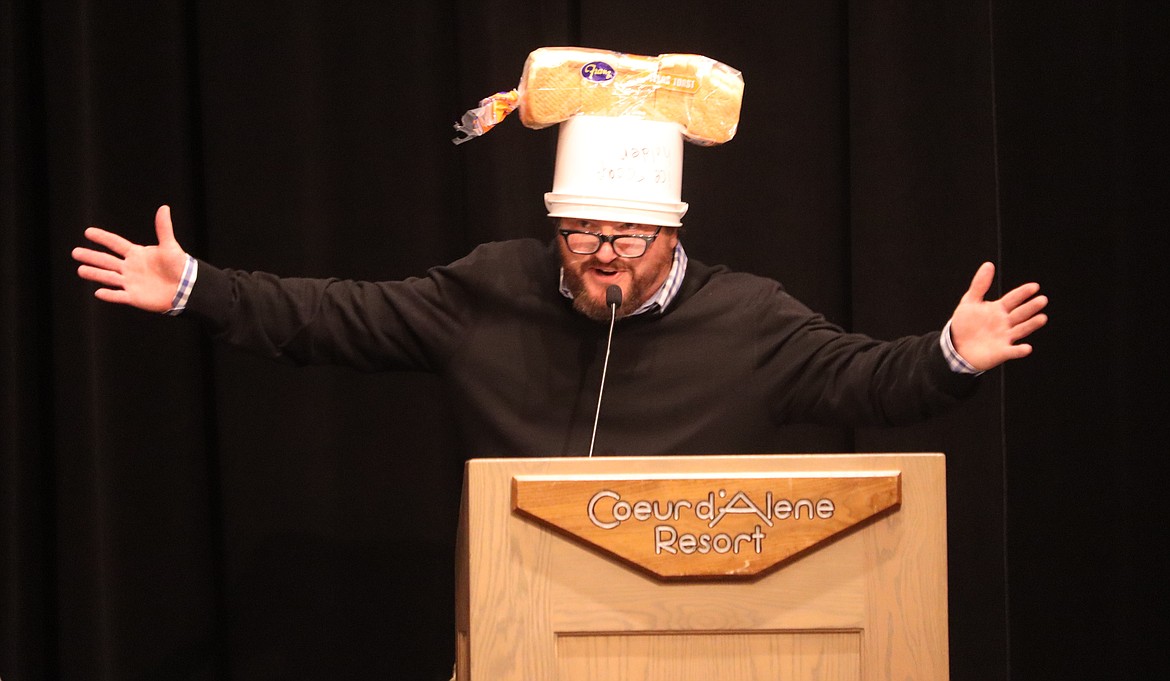 J.J. Jaeger, president of the Best Western Plus Coeur d'Alene Inn, tells a joke at the 32nd annual "After 5 Luncheon" at The Coeur d'Alene Resort on Thursday.ARTICLES BY BILL BULEY