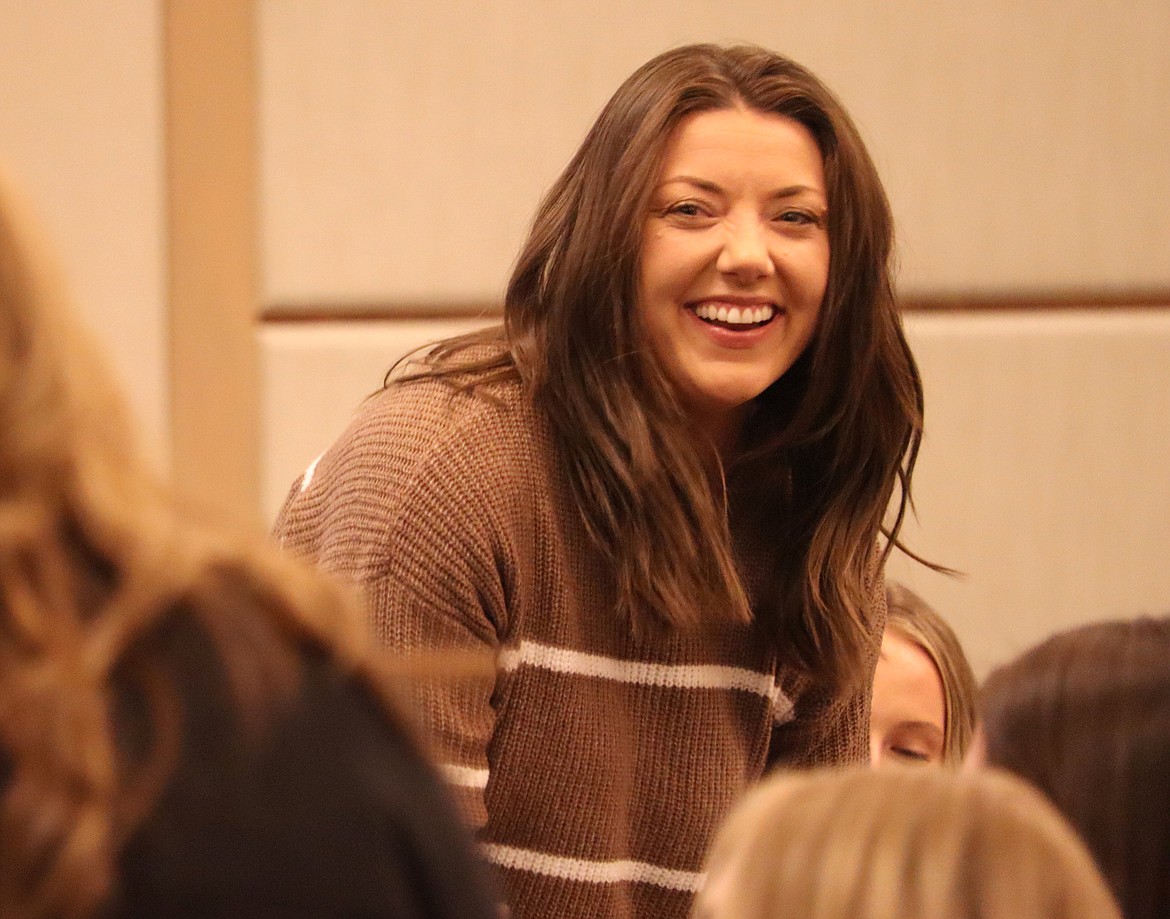 Brianna Shriner, Hagadone Corp. administrative manager, smiles as prizes are presented at the 32nd annual "After 5 Luncheon" at The Coeur d'Alene Resort on Thursday.
