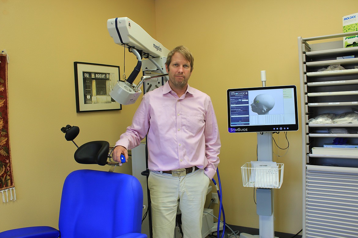 “The side effects I have seen from TMS treatments are local. Some people have headaches,” Esser said. “But, you start low and increase the strength of the magnetic field as needed or as tolerated, and they get used to it. I have not had anybody dropping out yet of my treatment due to pain or discomfort.”
