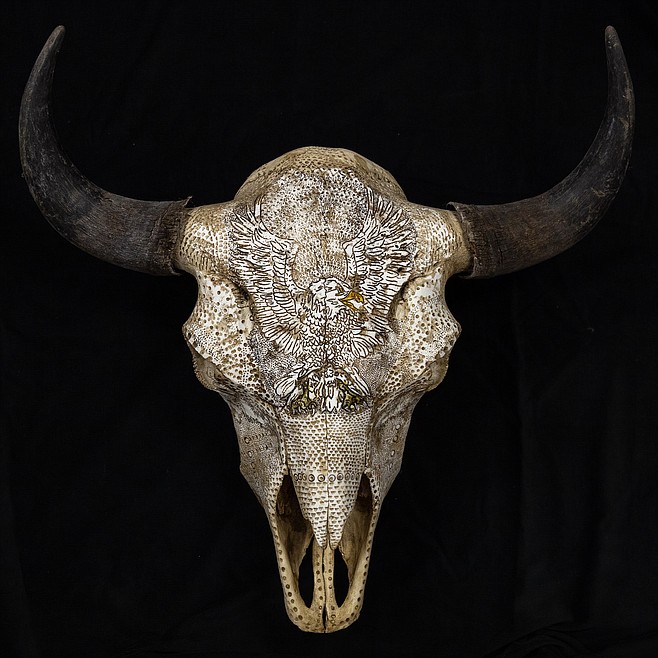 Unlike most artists, Hickey's blank canvases are home-grown from the nutrients and minerals of the Montana landscape. He started collecting animal skulls as a hobby and now hand-carves bison and longhorn skulls into beautifully intricate wall-hanging sculptures and adds paint, stains, reclaimed leather and fur, metals, and stones to make each piece unique and representative of local materials. The artist will be at Cawdrey Gallery in person on Sept. 7 during Whitefish Gallery Nights talking to collectors and displaying his newest work. Light refreshments and small bites will be served.