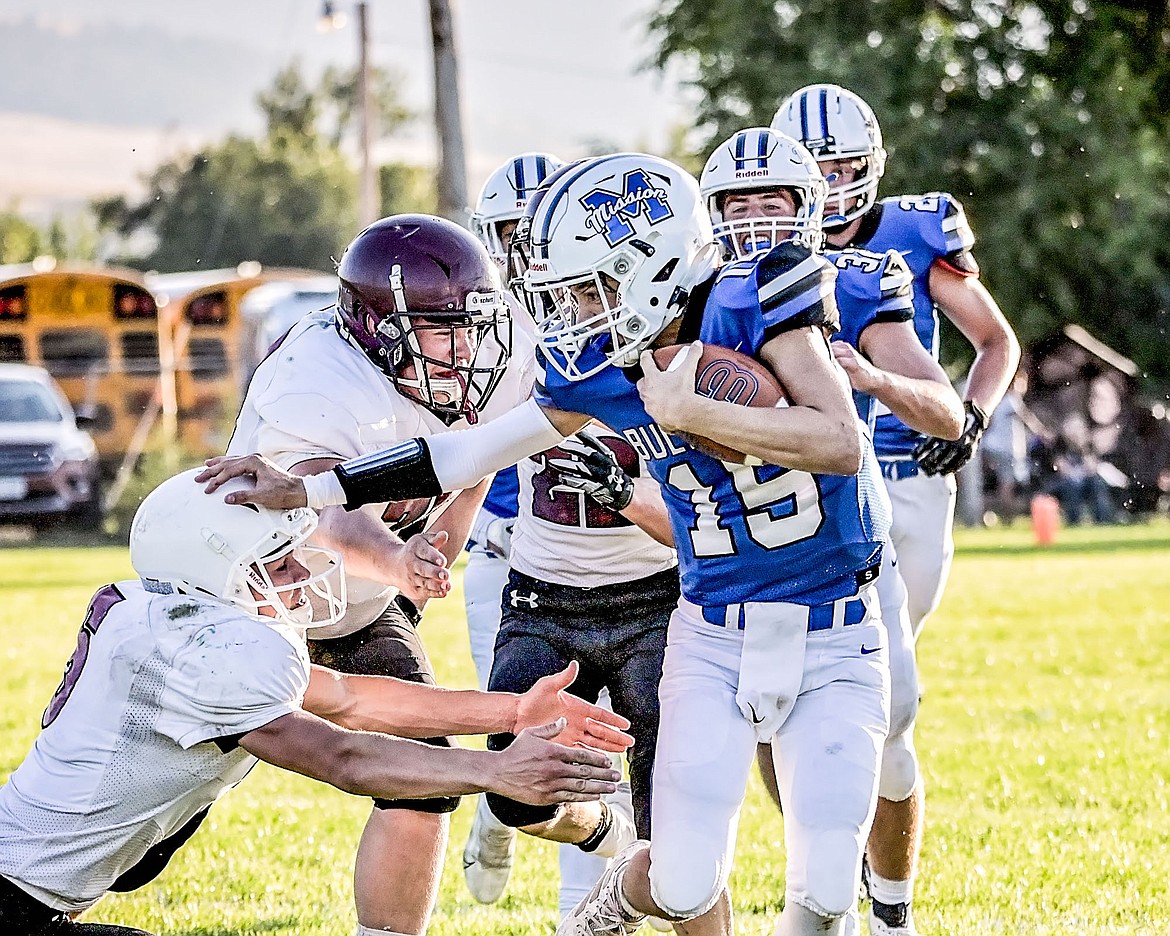 Titan Mansell threw three touchdown passes and ran for two more as the Mission Bulldogs defeated Troy 50-13 in Western 8-man football action on Friday, Sept. 1, in St. Ignatius.