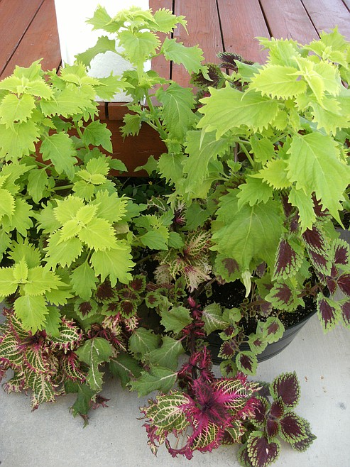 Be sure to take cuttings of any coleus you want to save. It's easy to cut off some stems, drop them into a jar of water and place it near a window for rooting. Once these get to be about an inch long they can go into some potting soil until spring. I've kept starts of my favorites for years.