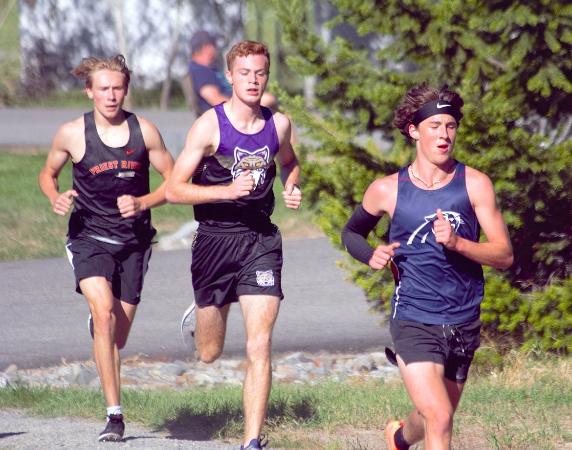 TOP 10 – 1, Nathan Russell CDA Charter, 17:18. 2, Makai Peak, Kellogg, 17:34. 3, Nolan Oyler, CDA Charter, 17:46. 4, Ryken White, Kellogg, 18:15. 5, Colm McLaimtaig, Priest River, 18:28. 6, Brayden Lamanna, Priest River, 18:53. 7, Caeden McLaimtaig, Priest River, 19:20. 8, Micah Thomson, Bonners Ferry, 19:53. 9, Cole Phillips, Bonners Ferry, 19:57.58 ; 10, Devon Banning,