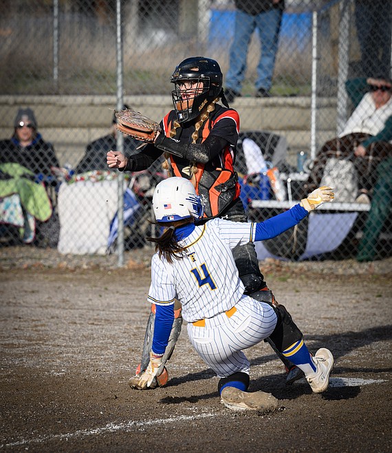 Plains senior Marissa Young scored the Trotters first run of the season in the opening inning when she walked and scored on a double by Teagan Saner.