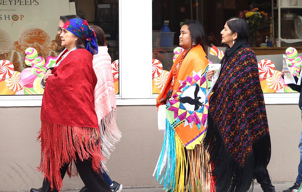 COEUR d'ALENE — The shawls worn by tribal members in downtown Coeur d'Alene on Thursday were a mix of colors.