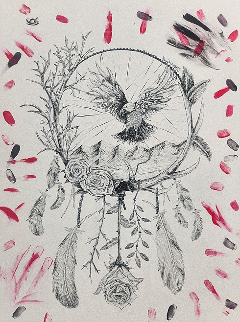 “I’m Native American, my tribe is Choctaw and I inherited that from my dad’s side of the family. I interpreted it into my artwork by using many aspects, but the main ones were the feathers, eagle and the dreamcatcher,” Watson said.