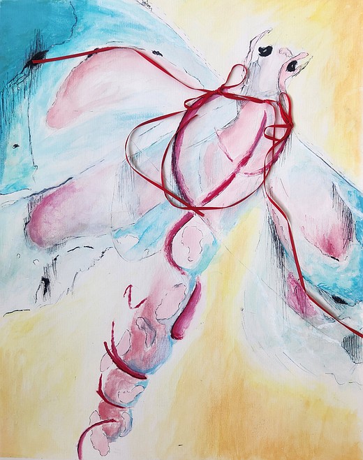 Her artwork, “The Dragonfly” emerged as a concept after she learned that they were the symbol for adoption.
