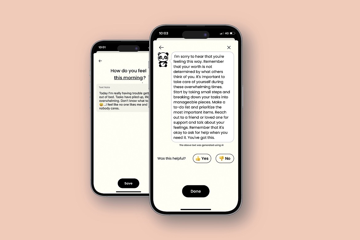 Start talking or typing about anxiety and the app generates the kind of comforting, sympathetic statements therapists are trained to deliver. The panda might then suggest a guided breathing exercise, ways to reframe negative thoughts or stress-management tips.