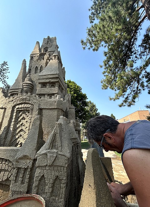 It was 14 feet tall and made of 26 tons of sand, water and glue. The Dodsons started Wednesday and expect to finish Sunday.