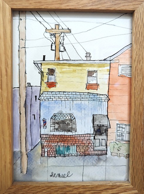 Perhaps my favorite among the 2-D works was “Barber Shop” by Samuel Barbacci, a watercolor with pen and ink. The piece, both nostalgic and modern, depicted an old building with power lines overhead, evoking a sense of history intertwined with the promise of new ideas. I noticed another watercolor by Joe Barbacci in the senior category, leading me to believe Samuel might be following in his footsteps.