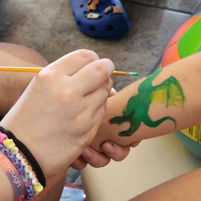 Family Fun Day, held Saturday, offered lawn games, bouncy houses, and food trucks outside on the lawn. The “Dunk-a-Hero” dunk tank saw the Polson firemen squaring off against the Mission Valley Search and Rescue. Inside the aquatic center was face painting and free swimming. The pool was packed with families having fun.