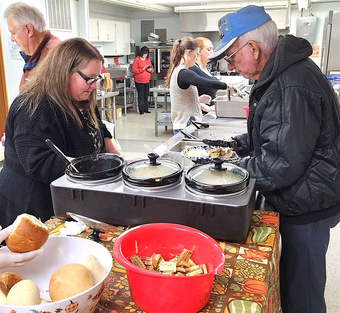 The scents of a traditional Thanksgiving feast drew people to the kitchen, where volunteers were dishing up plates full of turkey, potatoes and gravy, stuffing, cranberries, and other fixin’s.