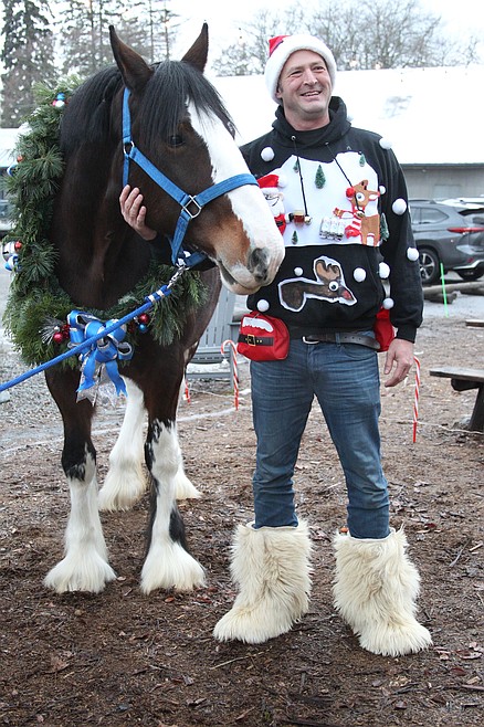 SantaCon participants even got to meet Missy, one of Parnell Ranch's Clydesdale horses, bedecked in her Christmas best with an oversized wreath decorated with bows and bells that jangled merrily when she moved.