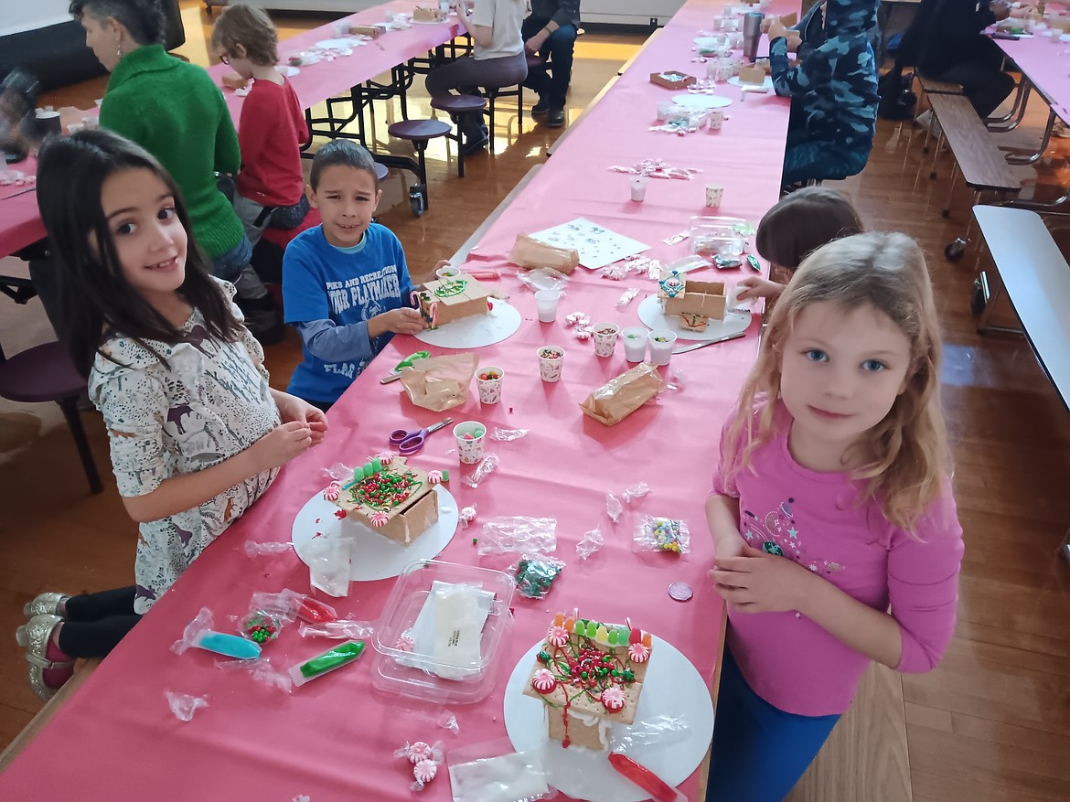 Sunday afternoon in the Alberton School cafeteria, families were having a wonderful time making and decorating gram cracker houses while enjoying warm beverages and snacks. Josie Hayes-Johnson, who is a mental health specialist for the school and involved with PEAK (Promoting Excellence in Alberton-area Kids) and PTSA (Parent Teacher Student Association) said they added a movie this year, "The Nightmare Before Christmas" for those kids who finished early or ate their construction material (jellybeans, candy canes, frosting, and sprinkles) rather than build. (Monte Turner/Mineral Independent)