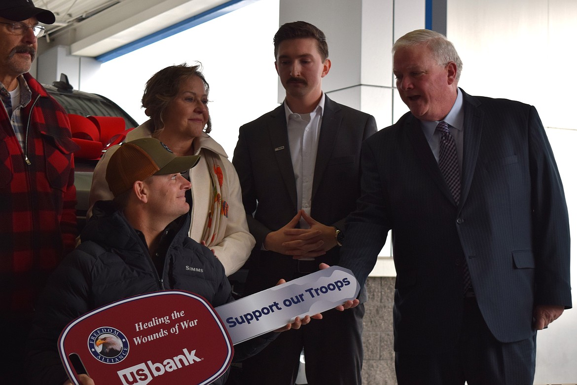 The Rathdrum man was gifted a 2025 Chevy Silverado 1500 and an all-terrain wheelchair “in honor of his courageous service to our country” by Freedom Alliance and U.S. Bank on Tuesday. The truck was provided by Knudtsen Chevrolet.