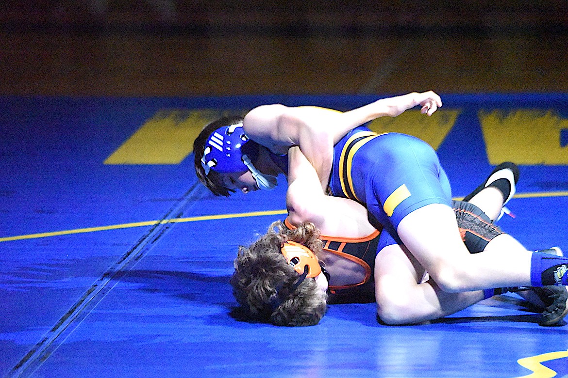 103-pounder Levi Nick opened the action with a pin in 4:27 of Eureka’s Trent Shay. At 110, Tristin Rogers followed suit with a pin in 1:16 of Mason Hickman to put Libby up 12-0.