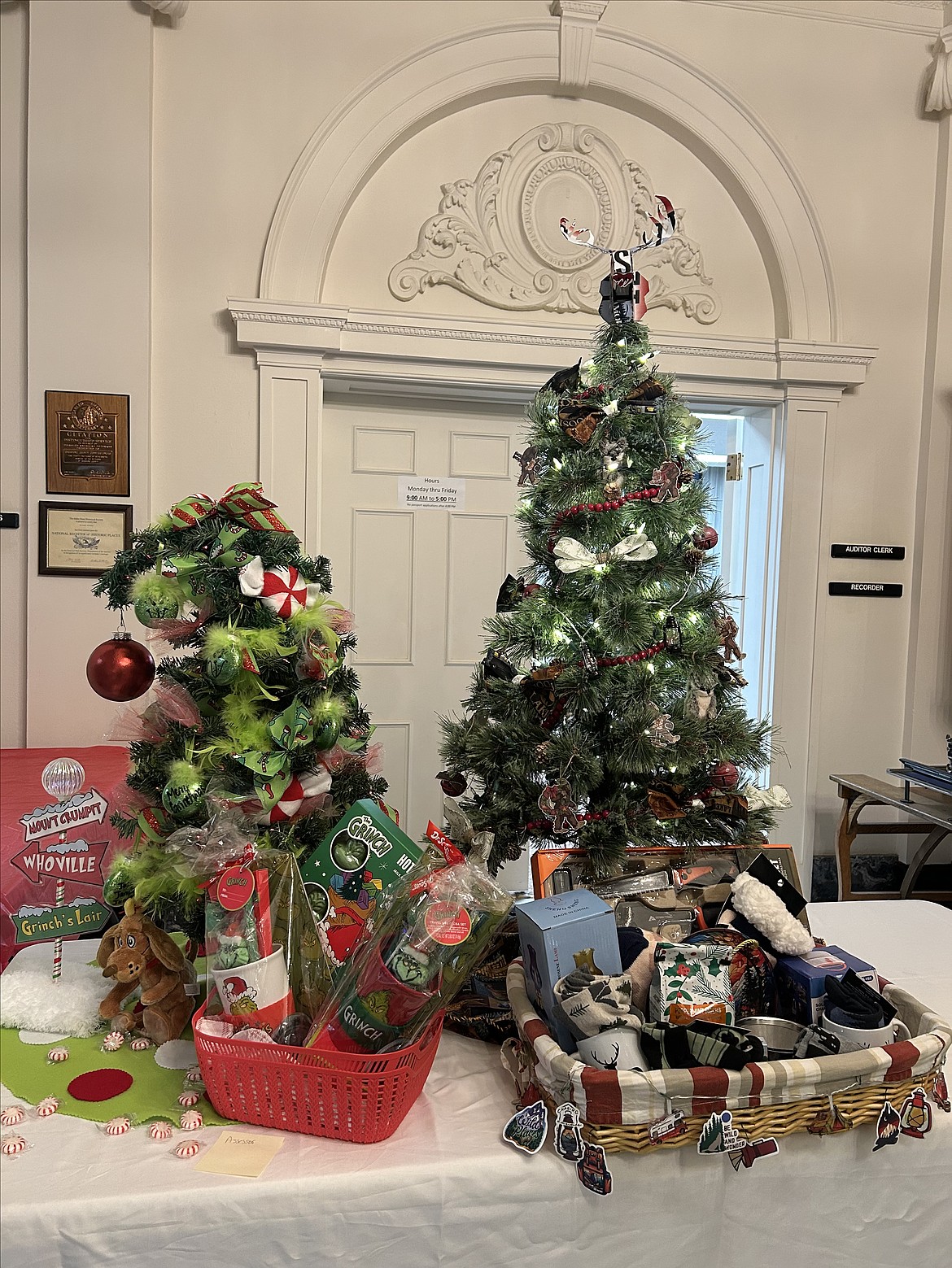 A total of $6,555 was raised by trees auctioned off at the courthouse. The highest bid came in for the public works tree at $5,000.