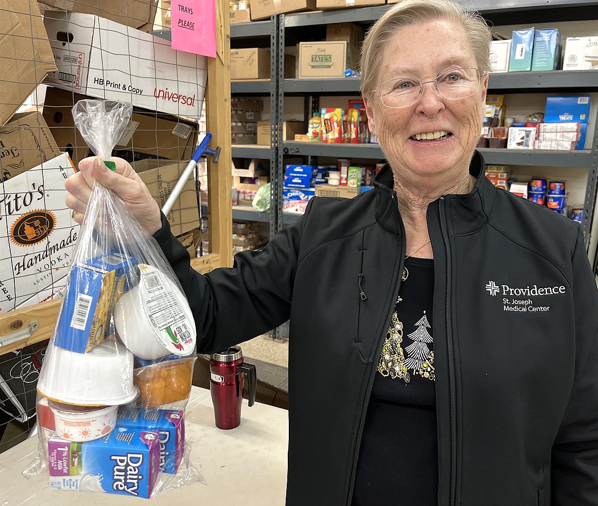 At Polson Loaves and Fish, director Mary Martin held up a bag full of kid-friendly food, including mac and cheese, boxed cereal, juice, milk, shelf-stable yogurt, pasta and a miniature can of sauce. Her crew embellishes the offerings too, adding granola bars, miniature cans of chicken-noodle soup and other favorites. When school resumes in the New Year, kids will also find a toothbrush in their stash.