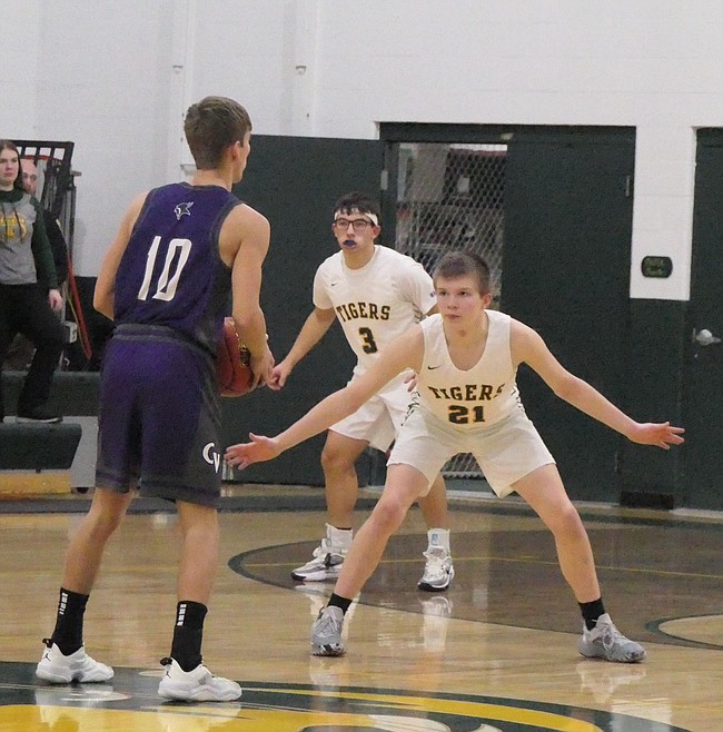 Then, in the third quarter, the Tigers dialed in from long distance, led by a pair of high-arching three-pointers from Lulis, who had eight points in the quarter, and junior Dillon Thomas, who dropped in four two-pointers to lead a break-away performance that generated a 53-29 lead by the end of the quarter.