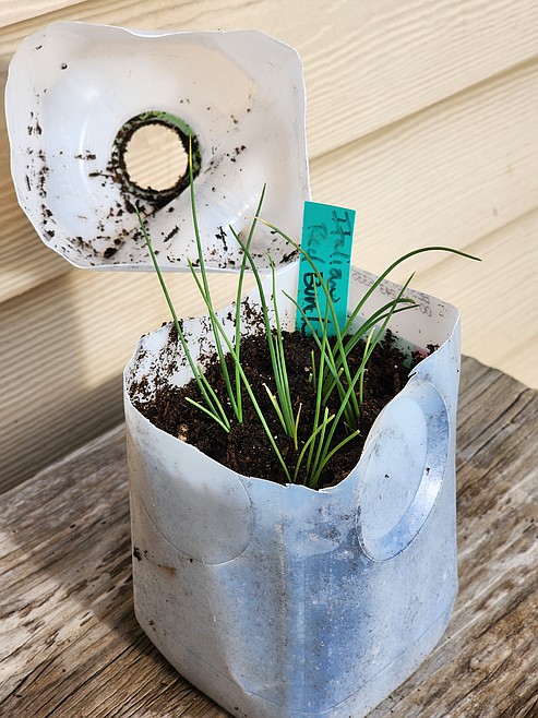 Fold back the halves and fill the container with moist potting mix. If small seeds are being sown, add a layer of seed starting medium on top of the potting mix for better germination. Sow seeds as directed on the seed packet and water thoroughly. Insert a plant label with the variety and date sown and then seal the container with duct tape. It’s a good idea to label the outside of the container too.