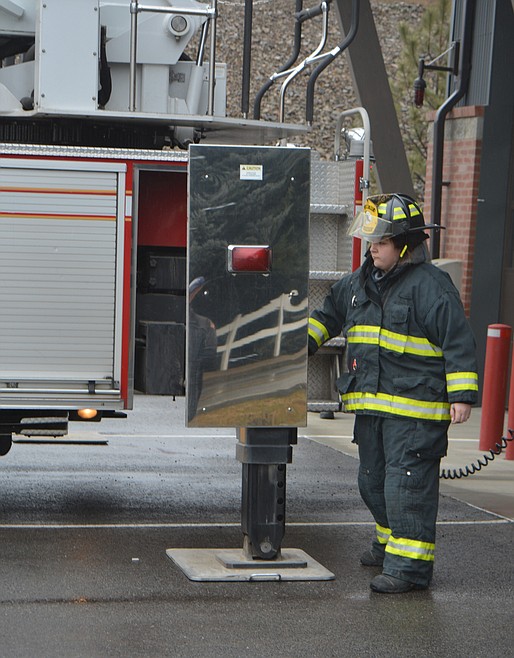 Bob Hansen operates the controls for the new ladder truck for Shoshone County Fire District No. 2 as Averie Kinsey observes. The truck is now available for multi-story calls in the Silver Valley.ARTICLES BY CAROLYN BOSTICK