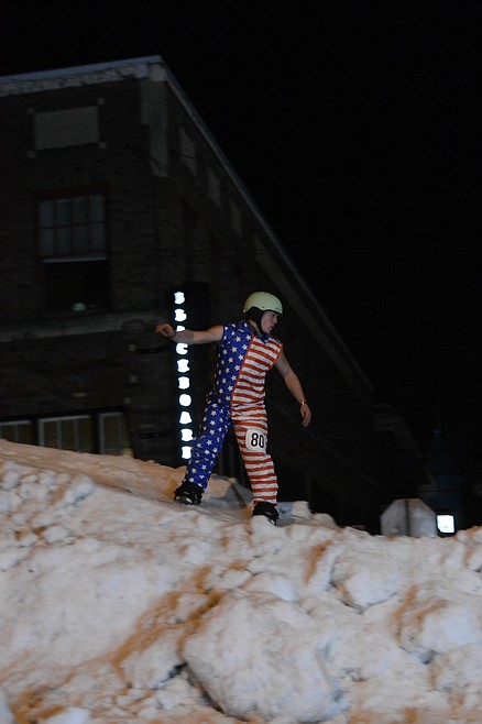 Skiers and snowboarders wait for their turn to show off their stunts on the rails during the rail jam in downtown Wallace. About 40 local and national competitors gathered over Presidents Day weekend to take part in Extreme SkiJor.ARTICLES BY CAROLYN BOSTICK