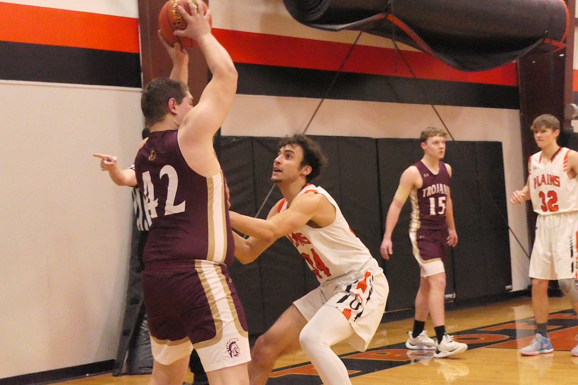 Also Tuesday night, this time in Plains, the third seed from 7B Horsemen took on Troy, the No. 6 seed and Plains came away with a comfortable yet hard fought 59-45 win over the Trojan boys.