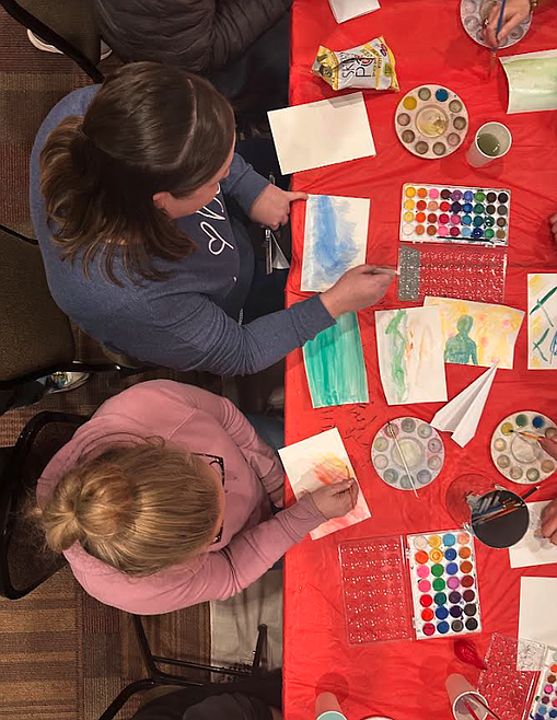 Art supplies were provided for the roughly 60 attendees as they explored using creative outlets as coping mechanisms. They were invited to freely paint after the first speech by Tyson Durbin, a licensed therapist working at the Kroc Center.