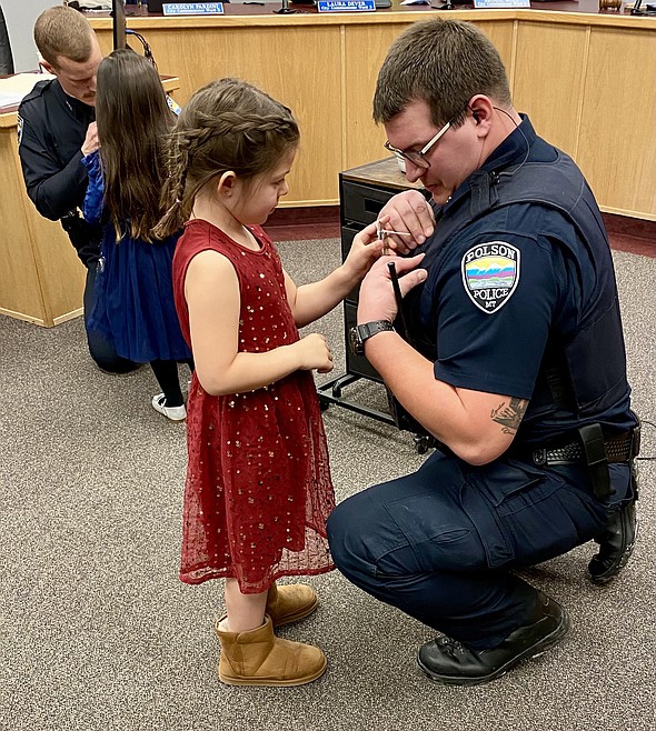 In early February, Polson Police Chief George Simpson introduced two new police officers, Kyle Kearney and Isaiah Williams, to the Polson City Commission. He also presented a letter of commendation to a third officer, Marcus Lindquist, for helping 911 dispatchers during a Dec. 10 shooting in Ferndale.