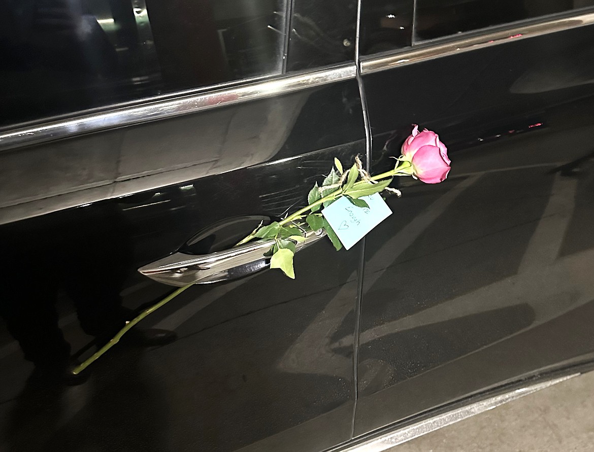 He walked around to check, and sure enough, pink roses and notes adorned each of around 40 to 50 vehicles.