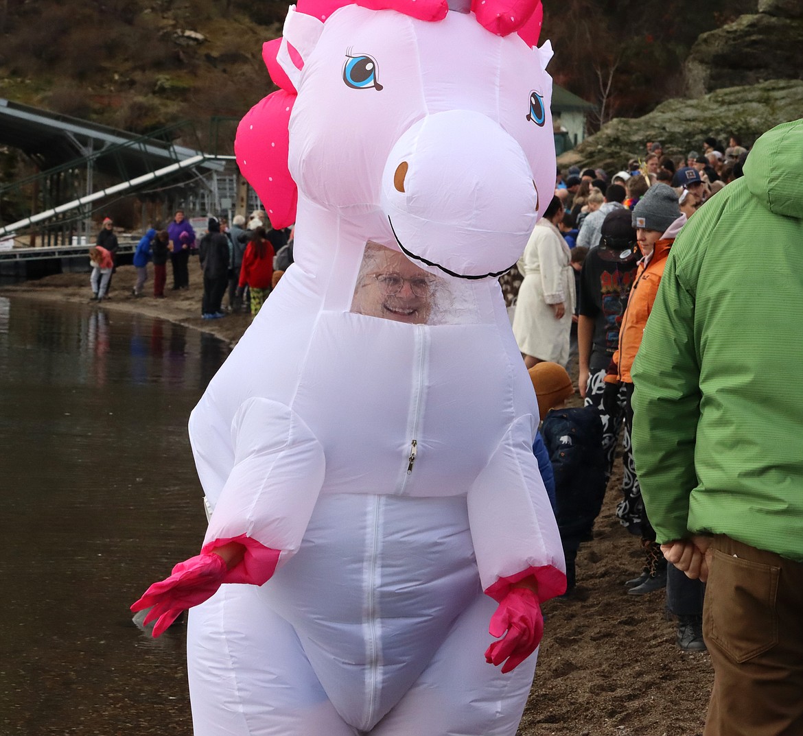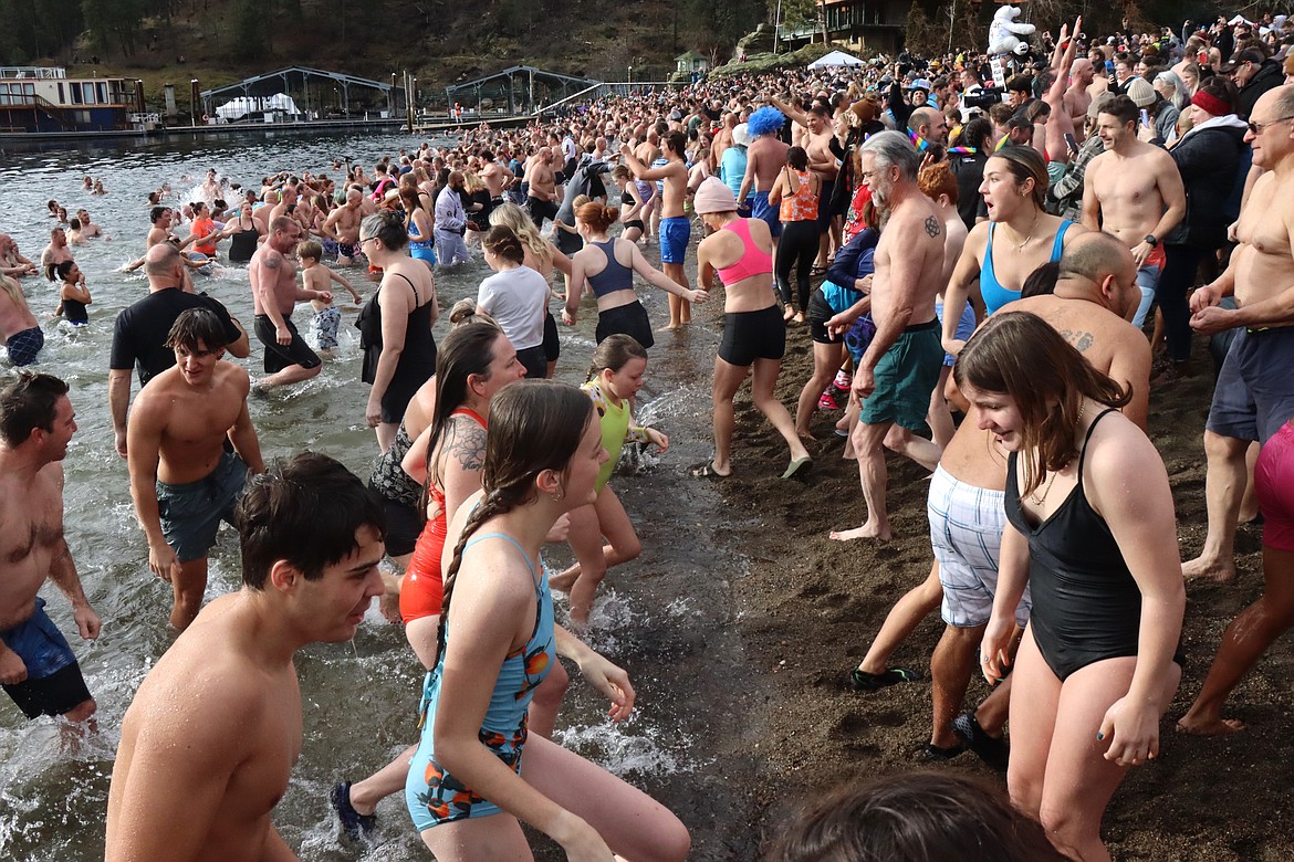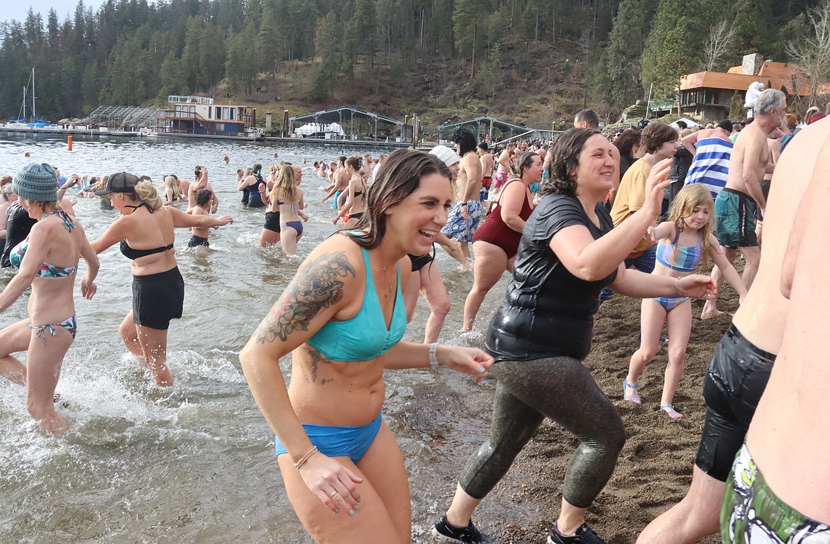 Nicole Perez and Kadi Jenne came over from Spokane and leaped into the icy water, even staying in it for several minutes. It didn’t bother them as they often practice cold-water therapy.