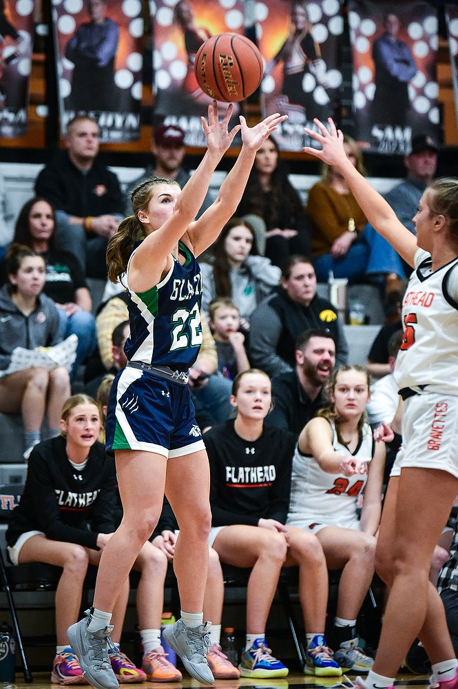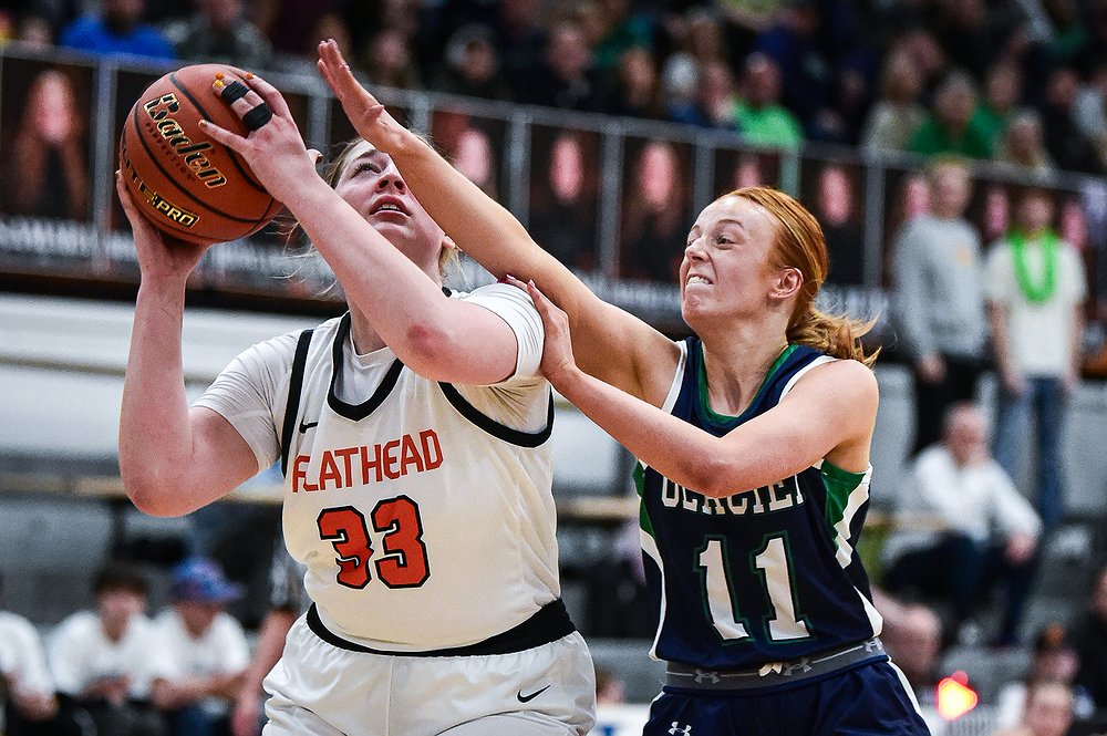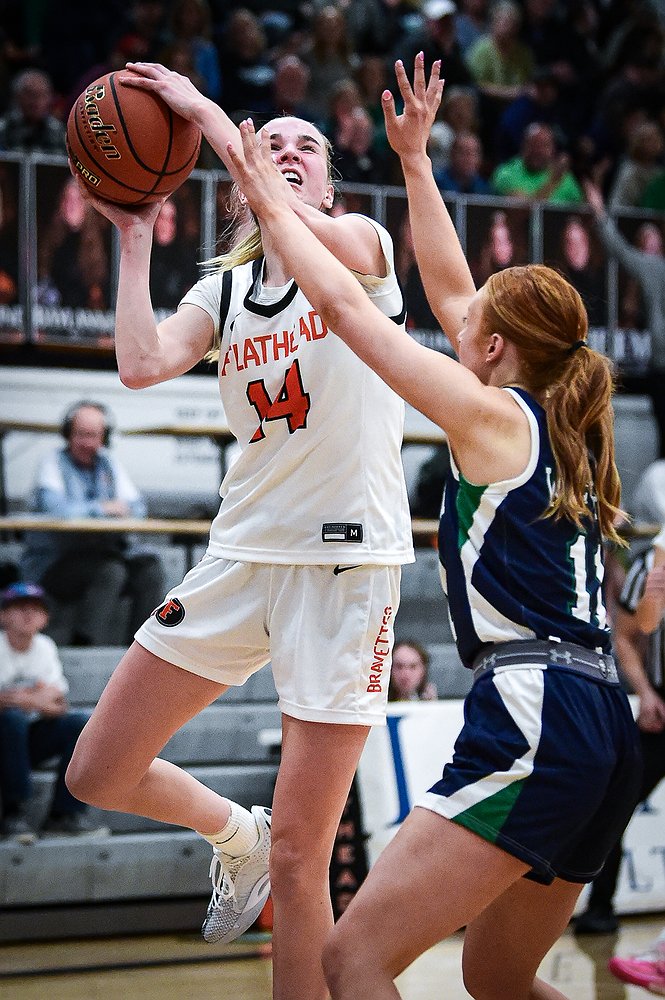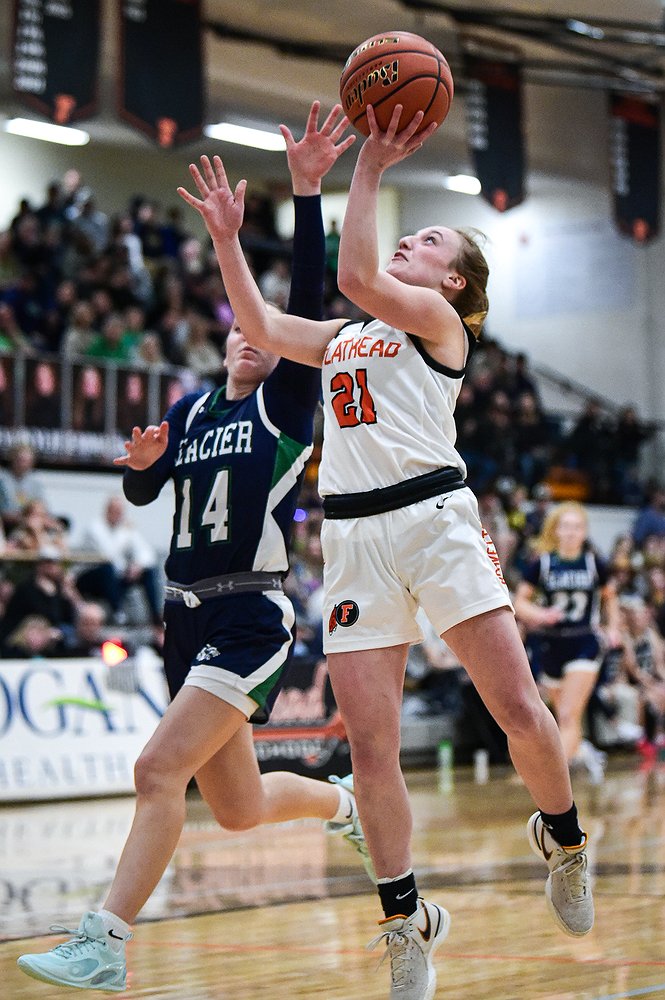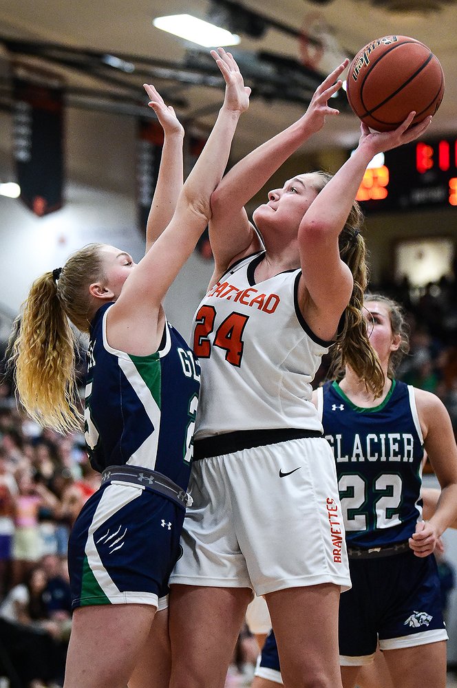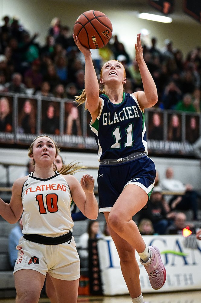 Flathead came out of the gates hot, jumping out to an early 8-2 lead after a Harlie Roth 3-pointer. Glacier’s press soon found its footing though, forcing the Bravettes into an abundance of turnovers.