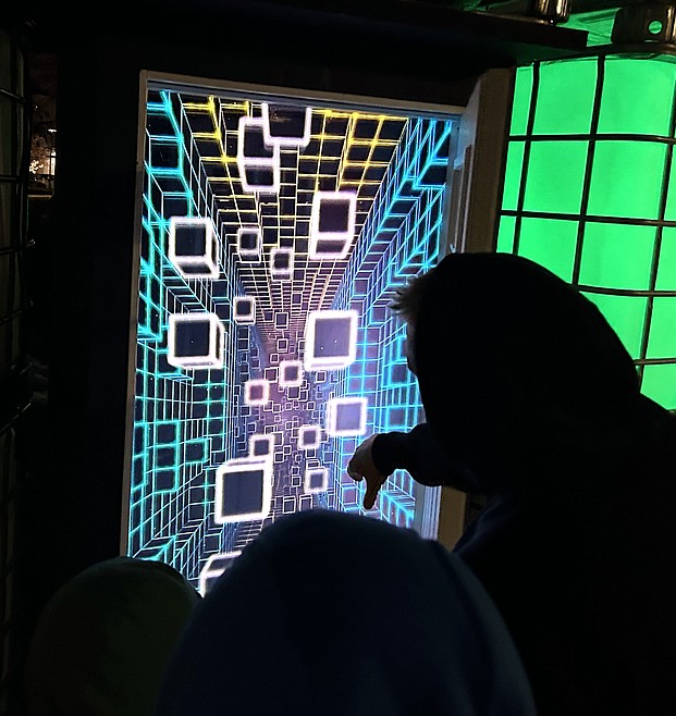 The Tunnel on The Resort front lawn is a series of 12-foot cosmic structures that create a tunnel of light and sound. Visitors can use an interactive device to create light patterns and sounds.