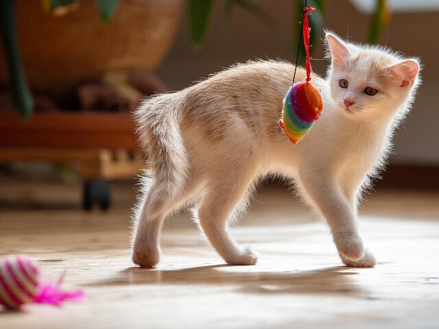 While toys can be a fun way to keep your cat engaged, it is important to provide enrichment in a safe manner.
