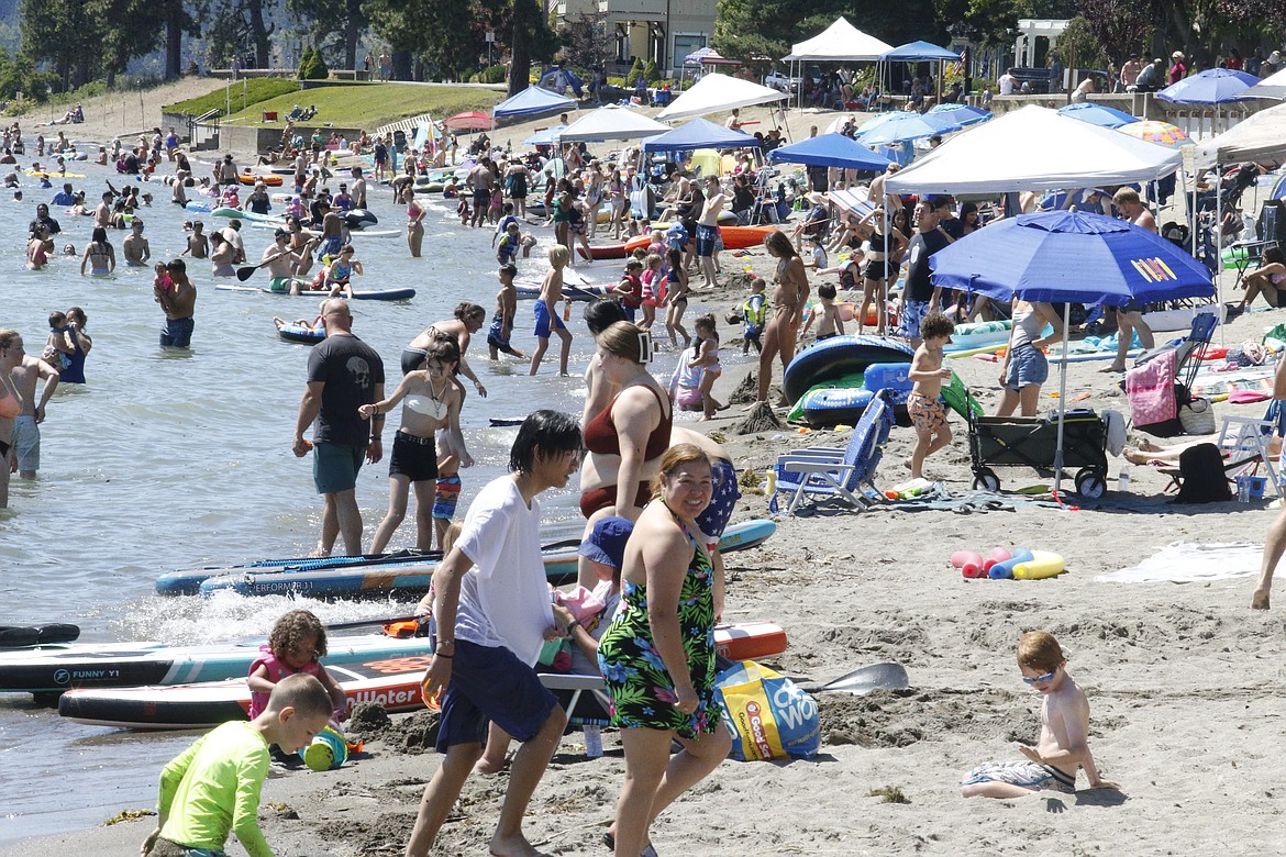 Hundreds of people crowded the beaches along Lake Coeur d’Alene on Friday afternoon — swimming, paddleboarding, sunbathing, playing in the sand — as temperatures soared to a high of 87 degrees.