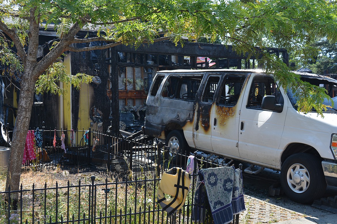 The fire was kept away from bedrooms and the basement of the residence. A vehicle parked near the garage was damaged.