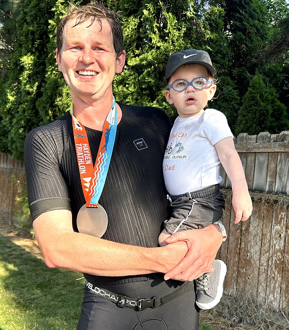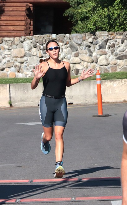 The event included a half-mile swim in a calm Hayden Lake, a 12-mile bike ride and 3.1-mile run. There were just over 200 finishers. Many came in with big smiles and arms held high as they were greeted by friends and family. Some sat down to recover.