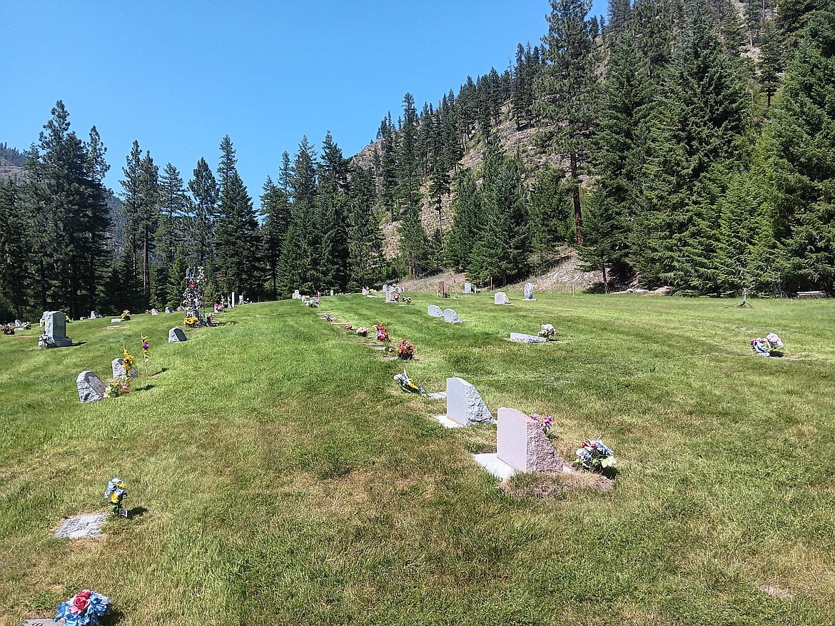 “Plots are free and only available for residents of our cemetery district which is from my road west (Henderson Exit 22/Camels Hump Road) to the Idaho border. Plots should be reserved since space will ultimately run out,” she shared. “There are 39 known veterans’ graves. The oldest known is a baby buried in 1905 from a long-standing family of which few remain and who live in Spokane now. Many of our residents were born in the mid-1800s.”