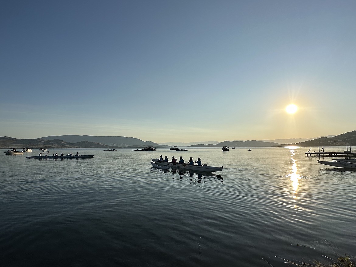 This year’s 30-mile voyage drew around 160 paddlers who took the six-person and one-person outriggers to Angel Point near Lakeside and back to Big Arm.